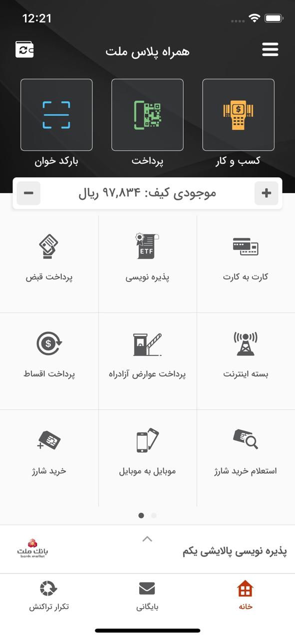 - قابلیت پرداخت انواع قبوض خدماتی و جریمههای رانندگی