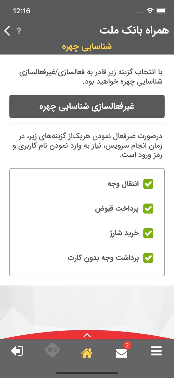 ویژگیهای همراه بانک ملت برای آیفون